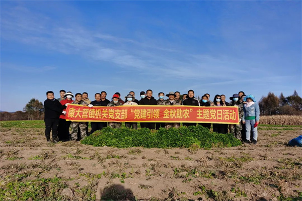 年初以来,按照市委、市政府“农业产业突破年”的部署要求,康大营镇大力发展蔬菜种植产业,目前北赵村种植“二茬”香菜已经成熟。10月8日,镇机关党支部开展“党建引领 金秋助农”主题党日活动,深入田间地头抢收香菜,同时解决秋收期间劳动力紧缺的难题。