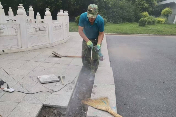 没有华丽的言辞,也没有张扬的举动,马秀清只是默默地开始了他的“工程”。他先是仔细查看了每一块破损的石阶,评估了需要修复的范围和难度。然后,他利用自己的休息时间,从家里带来了锤子、凿子、水泥等工具和材料。每天清晨,当第一缕阳光洒在广场上时,马秀清就已经开始了他的工作。他小心翼翼地拆除破损的石阶碎片,清理掉周围的杂物和尘土,再细心地调和水泥,将新的石阶材料铺设上去。