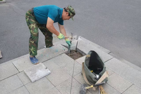 家住北部新城小区的马秀清是社区里的一位普通居民,同时也是社区老年大学音乐班的一名学员。平日里,他就以乐于助人著称,无论是邻里间的琐事,还是社区的公共事务,总能看到他忙碌的身影。这次,当他发现广场上的石阶因为年久失修而变得坑洼不平,甚至有些地方还出现了裂痕,给居民们的出行带来了不便时,他毫不犹豫地决定要自己动手修理。