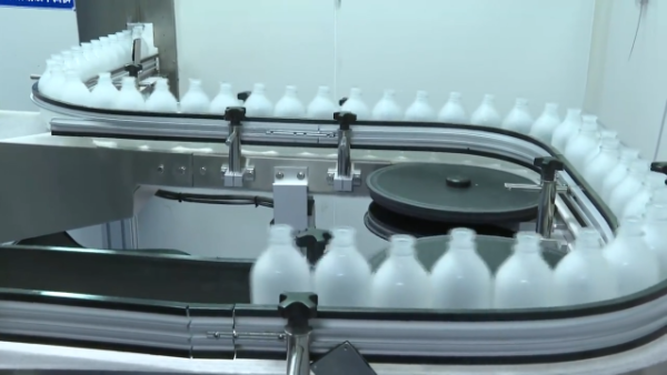在弘和制药有限公司的生产车间内,一排排玻璃瓶注射液整齐地排列在生产流水线上,在输送带的运送下,有序地通过轧盖、灭菌等生产流程,进入到灯检、包装工序。弘和制药有限公司作为四环医药控股集团大容量注射剂生产基地,以生产治疗性输液为主,其上市产品有着较强的市场竞争力。