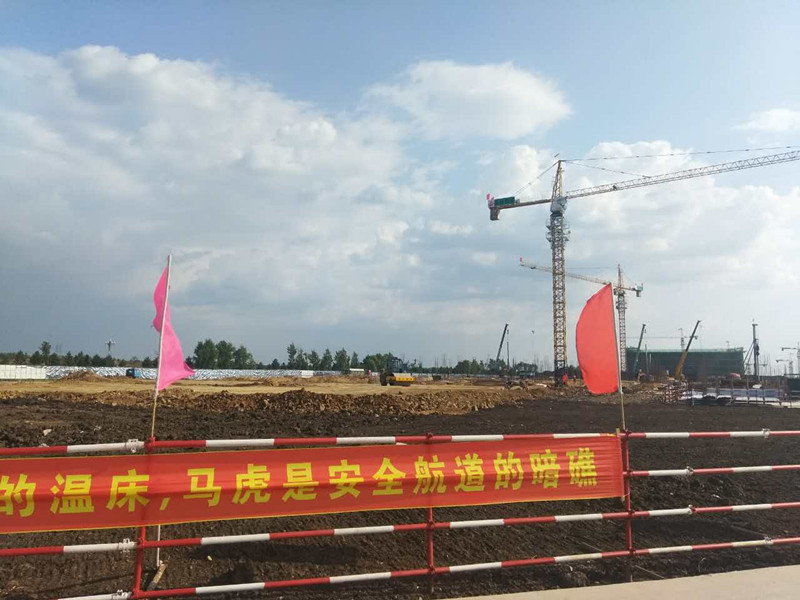 截止到8月份(项目进度):目前,正在进行施工现场基础施工和打桩、回填工作。