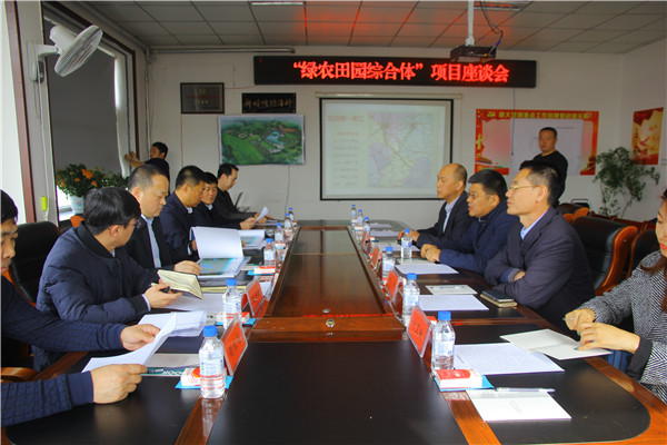在康大营镇政府会议室市长张恒、副市长霍光同吉林长裕集团有限公司董事长柳清民就“绿农田园综合体”项目建设的有关内容进行了交流。
