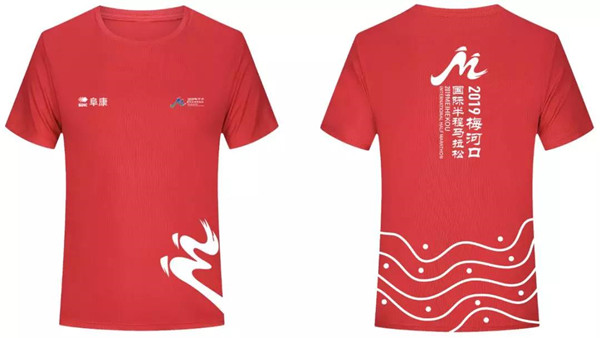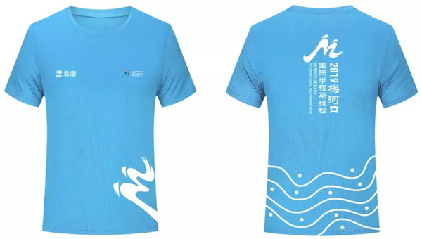 在服装正面侧下方,M的设计原型抽象但赋有生命力,仿佛如奔跑的跑友,展现着梅城的风采和跑友的活力,服装背后显著的赛事logo,再次映照比赛主题,而下方的波浪形图案,将梅河的动感、流畅表达的十分清晰,汇聚八方来客,共享梅城风采。也期待跑友一起在梅河口愉快奔跑,享受美好的阜康2019梅河口国际半程马拉松。