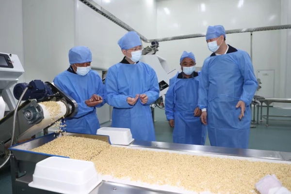 5月21日,梅河新区党工委书记、市委书记朱欢深入果仁企业调研产业发展情况,他强调,要大力发扬“梅河口松子精神”,立足资源禀赋和产业基础,以延伸产业链条为核心、以创新驱动为动力、以全要素保障为基础、以开放合作为路径,推动梅河果仁产业实现从“小特产”向“大产业”的跨越式发展。