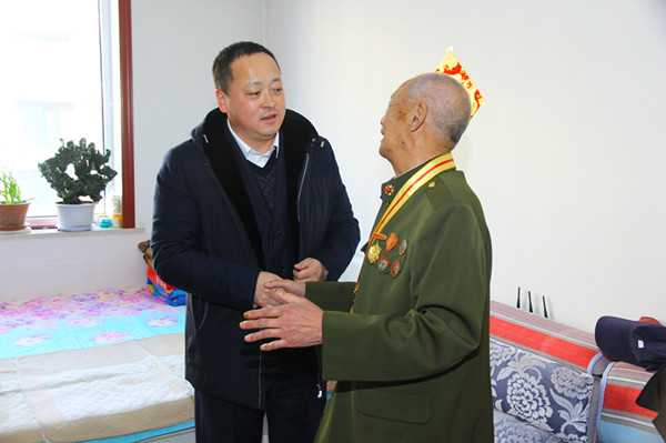 在优抚对象于绍武的家里,张恒向今年八十六岁的老兵于绍武赠送了慰问金,详细询问了老人生活起居和身体状况,得知老人能吃能喝、精神矍铄的情况后,张恒非常高兴,嘱咐老人和家属,有什么要求要及时向组织提出来,组织上一定尽可能的帮助解决。张恒预祝老人家身体健康,新春幸福。