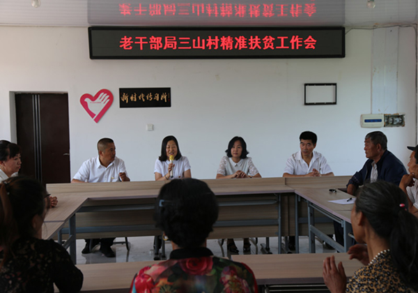 此次活动是在湾龙镇三山村党支部会议室进行,首先由三山村党支部组织委员陈海军汇报了三山村贫困户的情况,局领导给与充分肯定并提出殷切希望。第二项由老干部局机关党支部书记刘洋带领全体党员重温入党誓词,全体党员神情庄重,面对鲜红的党旗郑重宣誓,抒发对党的忠诚。第三项是由三山村党支部成员与老干部局包保贫困户党员共同研究脱贫措施,结合三山村实际,通过产业发展、健康扶贫、低保兜底等政策,分类施策,精准到户,帮助贫困户增加收入,使他们早日摆脱贫困。贫困户王德富激动地说是党的好政策让他们过上了好日子,包保党员经常上门,服务热情周到,并向包保党员干部们表示忠心地感谢。第四项老年大学演出在大合唱《歌唱袓国》中拉开序幕,学员们通过古典舞、吉剧、三句半、二胡表演、书法等文艺形式,为三山村群众献上了一场精彩的文化盛宴。