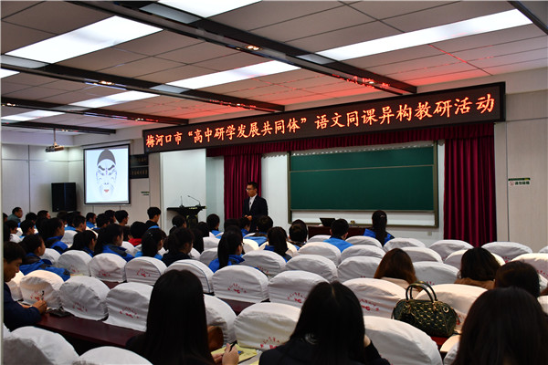 11月9日,“高中研学发展共同体”语文同课异构交流活动在第五中学明德楼多功能会议厅成功举办。市教育局副局长于长军,市教师进修学校校长邴德发、副校长邵文远、“高中研学发展共同体”各成员校相关领导参加了活动。