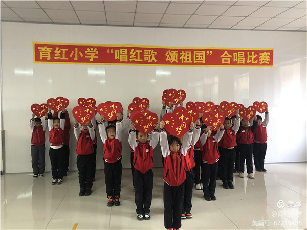 同学们用自己饱满的热情,齐唱红歌,歌颂祖国。