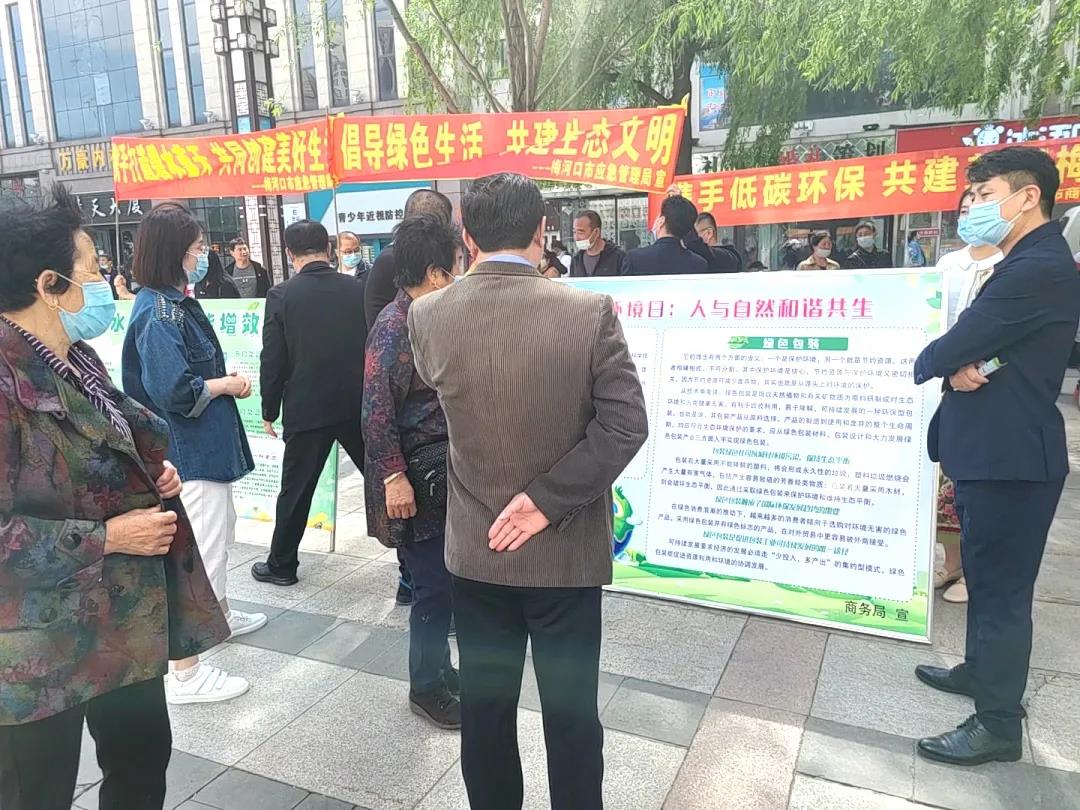 6月5日是世界环境日,梅河口市商务局以环境保护为主题,立足商务职能,从商贸物流与对外贸易角度出发,提倡绿色包装,与自然和谐共生,在中心商业街开展了户外宣传活动。副市长孙士岩对我局开展情况进行了督导视察。活动开展前,商务局副局长张洪光亲自到现场进行指导布置,带领工作人员推进宣传活动。活动中,通过悬挂条幅、发放宣传资料、设立展板、环保宣讲等形式,吸引百姓驻足,了解环保知识,起到了良好的宣传效果。