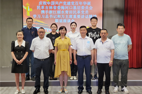 时维七月,正直仲夏,云销雨霁,彩彻区明。按照《民革中央关于认真学习习近平总书记在庆祝中国共产党成立100周年大会上的重要讲话精神的通知》要求,民革梅河口市基层委员会立刻部署、积极响应,7月8日,由市基层委员会冷霜主委发起组织,部分班子成员、党员和联系人代表同远道而来的浙江丽水青田籍民革党员巫旭敏董事长济济一堂,齐聚环境优雅的丽水青田侨乡进口商品城梅河口市直销中心巴黎会议厅,召开学习贯彻中共中央习近平总书记和民革中央万鄂湘主席讲话精神的联谊座谈会。