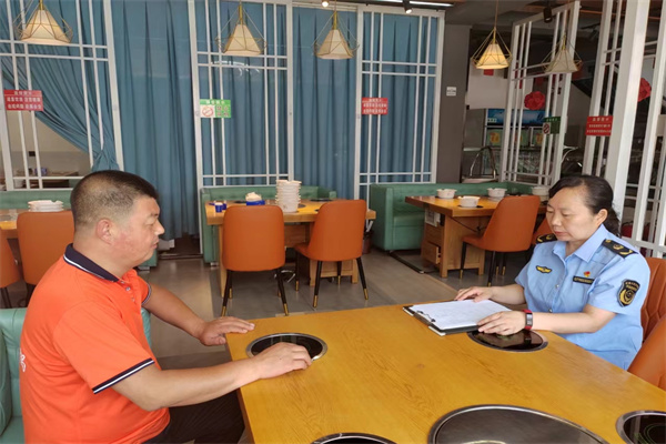 梅河口市市场监督管理局解放市场监督管理分局下沉一线,到企业进行走访调研,分别走访了梅河口市峻豪张氏厨道餐饮服务有限公司、梅河口市渝江川火锅店,调查了解企业、个体工商户经营中存在的困难,向其宣传相关法律、法规,主动提醒企业年报、夏季高温期间食品风险等,用真实案例使其了解经营中存在的风险点,怎样规避风险点,以达到提升服务质量、合法经营的效果。调研过程中现场为2家企业协调解决了急难问题,获得企业高度认可。