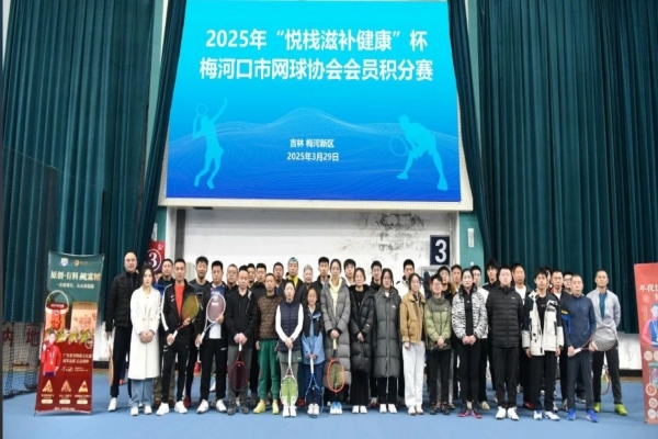 3月29日,由梅河口市文化广播电视和旅游局(体育局)主办,梅河口市网球协会承办,梅河口市汇康体育场馆经营管理有限公司协办,广州市习宝食品有限公司赞助的2025年“悦栈滋补健康”杯梅河口市网球协会会员积分赛在体育中心室内网球馆顺利完赛。