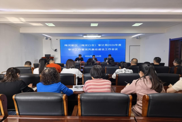 2026年3月26日,梅河新区(梅河口市)审计局召开2026年度审计工作暨党风廉政建设工作会议。会议深入贯彻党的二十届四中全会精神,学习贯彻习近平总书记关于审计工作的重要讲话和重要指示批示精神、李强总理的工作要求,落实全国、全省审计工作会议部署,系统总结“十四五”及2025年审计工作,全面部署“十五五”及2026年重点任务。会议由局党组书记、局长张巍主持,市纪委监委第一派驻纪检监察组组长杨光辉出席会议,党组班子成员、全体机关干部参会。