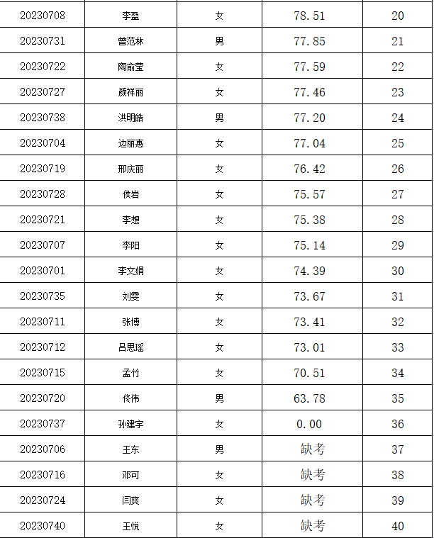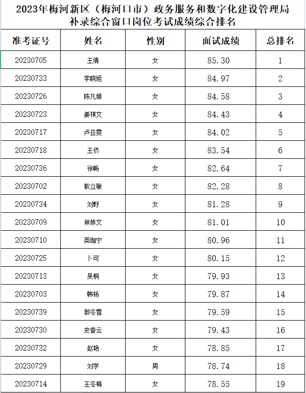 2023年梅河口市政务服务和数字化建设管理局补录综合窗口岗位考试成绩综合排名