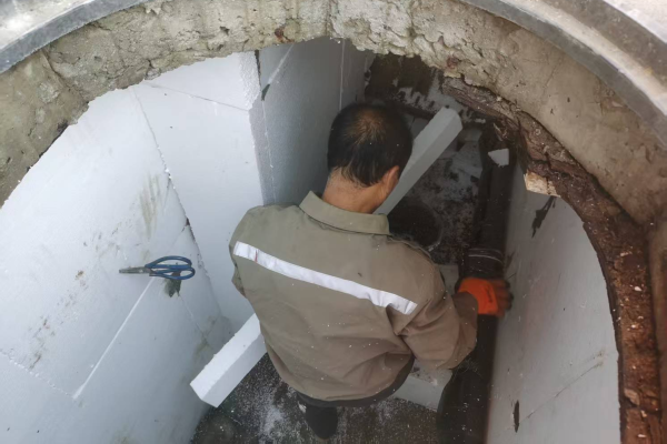 寒风凛冽中,“红心物业”的工作人员展现出高度的专业与敬业精神。他们深入管道井,精细清理每一处杂物与积水,为后续工作创造良好条件。随后,他们运用娴熟技艺,严密包裹管道、阀门及各个接口,确保保温棉无缝贴合,并辅以铁丝加固。最后,通过构筑“保温板阻隔+稻壳填充”的双层保温体系,为水管穿上了坚实的“保暖衣”,彻底消除了低温冻裂的隐患。