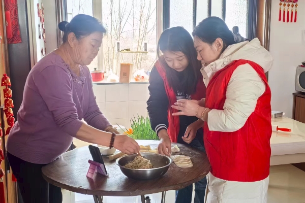 社区网格员前期通过细致摸排,建立独居老人信息台账,详细记录老人身体状况、生活需求及家庭居住环境等关键信息。在入户走访中,志愿服务队队长莫春月与老人亲切交谈、拉家常,细致询问其身体情况、日常饮食及生活所需,耐心倾听心声;同时认真排查房屋安全隐患,了解室内居住温度,叮嘱老人冬季及时添衣保暖,安全规范使用燃气与电器,切实筑牢居家安全防线。志愿者们还与老人一同包饺子、话家常,分工协作揉面、擀皮、包馅,现场氛围温馨和睦,让老人在寒冬中感受到暖心关怀与社区温情。除上门帮扶外,网格员还与老人搭建线上联系渠道,定期通过微信或电话沟通近况,并开通24小时关爱热线,确保老人遇到困难时能第一时间联系社区寻求帮助,全力打通养老服务“最后一米”。