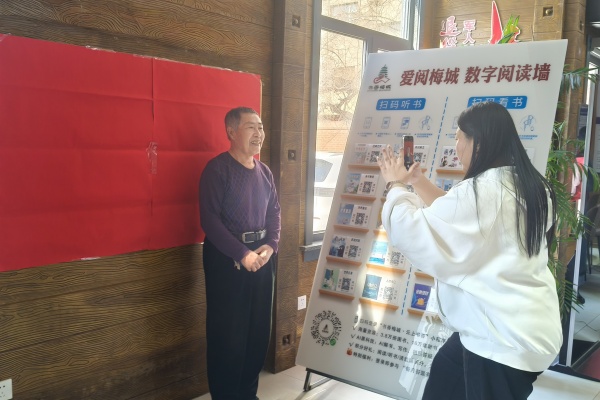 在另一侧的拍照区,红色背景前,益心守护队的志愿者小丁正细心为居民整理衣领:“阿姨,头稍微抬一点,对,笑一笑!”