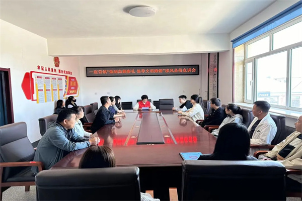 一座营镇开展“抵制高额彩礼 倡导文明婚俗”移风易俗宣讲会。镇宣传委员结合现实典型案例,向干部群众讲解了文明婚俗倡议书,呼吁党员干部带头承诺践诺,严格落实“两报告一承诺制度”,坚决抵制滥办酒席、大操大办、借机敛财等违规行为和“天价彩礼”等陈规陋习,倡导新时代婚嫁新风尚,让文明婚俗理念深入人心。