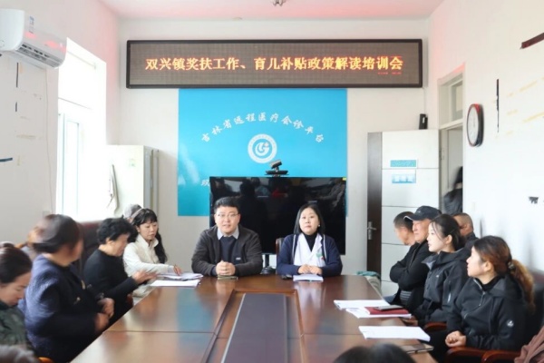 为保障育儿补贴申领工作高效推进,切实提升村级工作人员对奖励扶助政策的理解与系统操作水平,10月17日,双兴镇在镇卫生院组织召开计生奖扶工作、育儿补贴政策解读培训会。副镇长徐政、卫生院院长李莹出席会议,人口和计划生育服务站负责人胡迪主持会议。镇政府及卫生院相关工作人员、各村文书及妇女委员等村干部30余人参会。