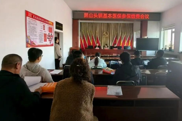 为扎实推进2026年度基本医疗保险参保缴费工作,确保惠民政策精准落地、惠及全镇群众,11月13日,黑山头镇组织召开2026年度城乡居民基本医疗保险参保缴费工作会议。会议由党委书记王慧莹主持,中国人寿保险股份有限公司业务员、具体工作人员、各村党支部书记、会计参加会议。