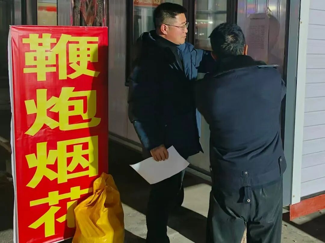 镇长带队深入辖区各烟花爆竹临时零售点,实地察看经营资质、产品摆放规范、消防设施配备、安全警示标识张贴等情况,重点排查是否存在“下店上宅”“前店后宅”、超量存储、店外存放等严重违规行为。