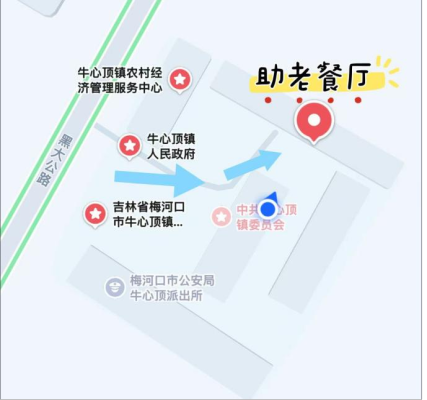 餐厅地址:梅河口市牛心顶镇人民政府院内东侧食堂。
