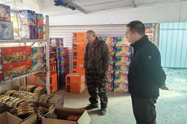 指导服务组首先前往双泉烟花爆竹长期零售点,重点围绕清明假期烟花爆竹经营、储存、管控等情况开展指导服务。结合清明期间祭祀活动特点,指导服务组向零售点负责人重点强调,清明假期是祭祀用火高发期,严禁向个人出售大量烟花爆竹,坚决防范烟花爆竹燃放引发火灾事故,同时要求负责人严格落实储存规范,做好防火、防盗措施,主动引导群众文明祭祀、安全燃放。同时,指导服务组发现部分违规爆竹存在安全隐患,现场联系烟花爆竹批发机构,明确要求其当日下午前调度车辆,完成违规爆竹的退货清运工作,确保安全隐患立查立改。