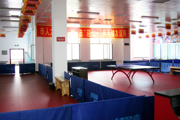 乒乓球馆:面积770平方米,为满足市民对国球的喜爱,中心设立乒乓球馆,馆内能摆放18张乒乓球台,可举办专业、业余比赛,同时具有训练教学功能。