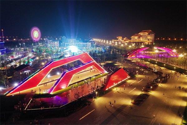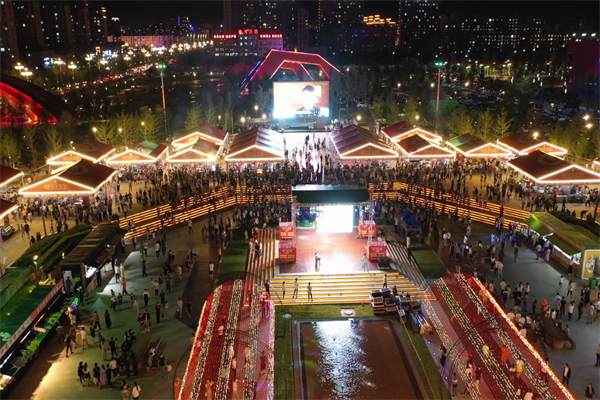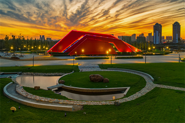 山水广场是河南新城市民主要休闲散步场所之一。从2018年起,连续四年举办啤酒节,吸引游客众多,掀起梅河口“夜经济”高潮。