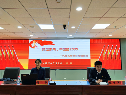 杨帆老师从重大意义、主要精神和目标、贯彻落实、梅河口新发展四个方面,深入浅出解读十九届五中全会精神内涵和充分解读出了”十四五”规划的宏伟蓝图,结合我市、我局实际,对全会精神作了系统阐述和细致讲解,让全局党员干部对全会重大意义更加清楚,对决胜全面小康社会取得的决定性成就更加自豪,对实现2035年远景目标更加有信心,对“十四五”时期经济社会发展的方针原则、主要目标、重点任务更加了解。