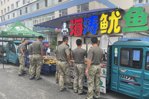 活动现场,30余家精选商户齐聚一堂,带来了地道的梅城特产与美食。从营养丰富的土特产木耳、香醇可口的大米、醇厚浓烈的白酒,到街头巷尾飘香的美食烤鱿鱼、红油大面筋、鸡翅包饭、烤冷面……每一道美食都承载着梅城人民对子弟兵的深情厚谊,让即将离别的老兵们在味蕾的享受中,再次感受到这座城市的温暖与味道。