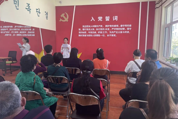 龙湖社区副主任鄢博诵读党章,带领党员同志学习党的章程,认清党员的纪律和规则,加深对党章的理解,提升党性修养。