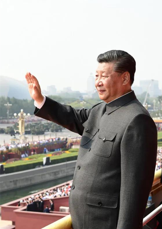 2019年10月1日,庆祝中华人民共和国成立70周年大会在北京天安门广场隆重举行。中共中央总书记、国家主席、中央军委主席习近平发表重要讲话并检阅受阅部队。这是习近平在天安门城楼上。