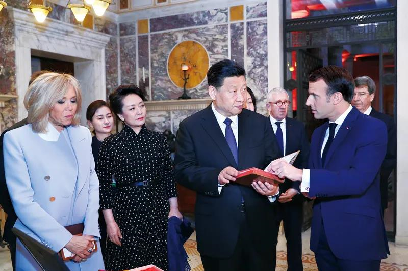 2019年3月24日,习近平在法国尼斯会见法国总统马克龙。会见前,马克龙向习近平赠送1688年法国出版的首部《论语导读》法文版原著。