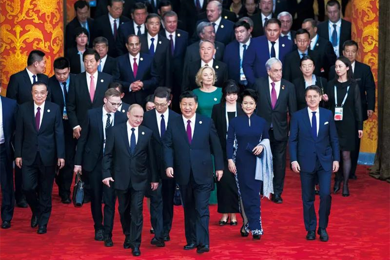 2019年4月26日,习近平和夫人彭丽媛在北京人民大会堂举行宴会,欢迎出席第二届“一带一路”国际合作高峰论坛的外方领导人夫妇及嘉宾。