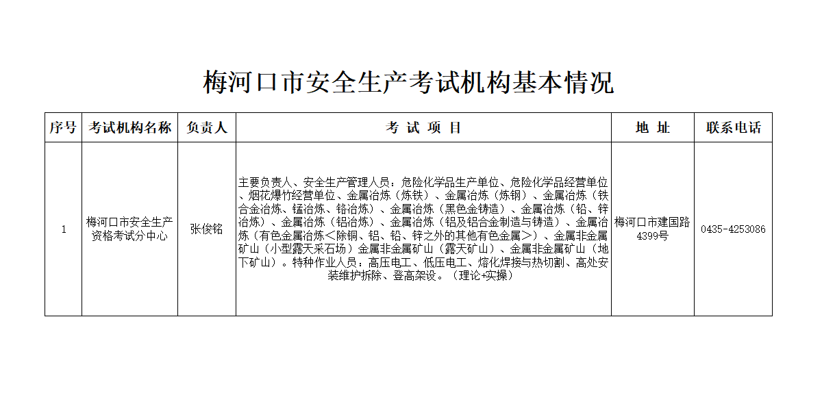 | 标 题: | 梅河口市安全生产考试机构基本情况 |